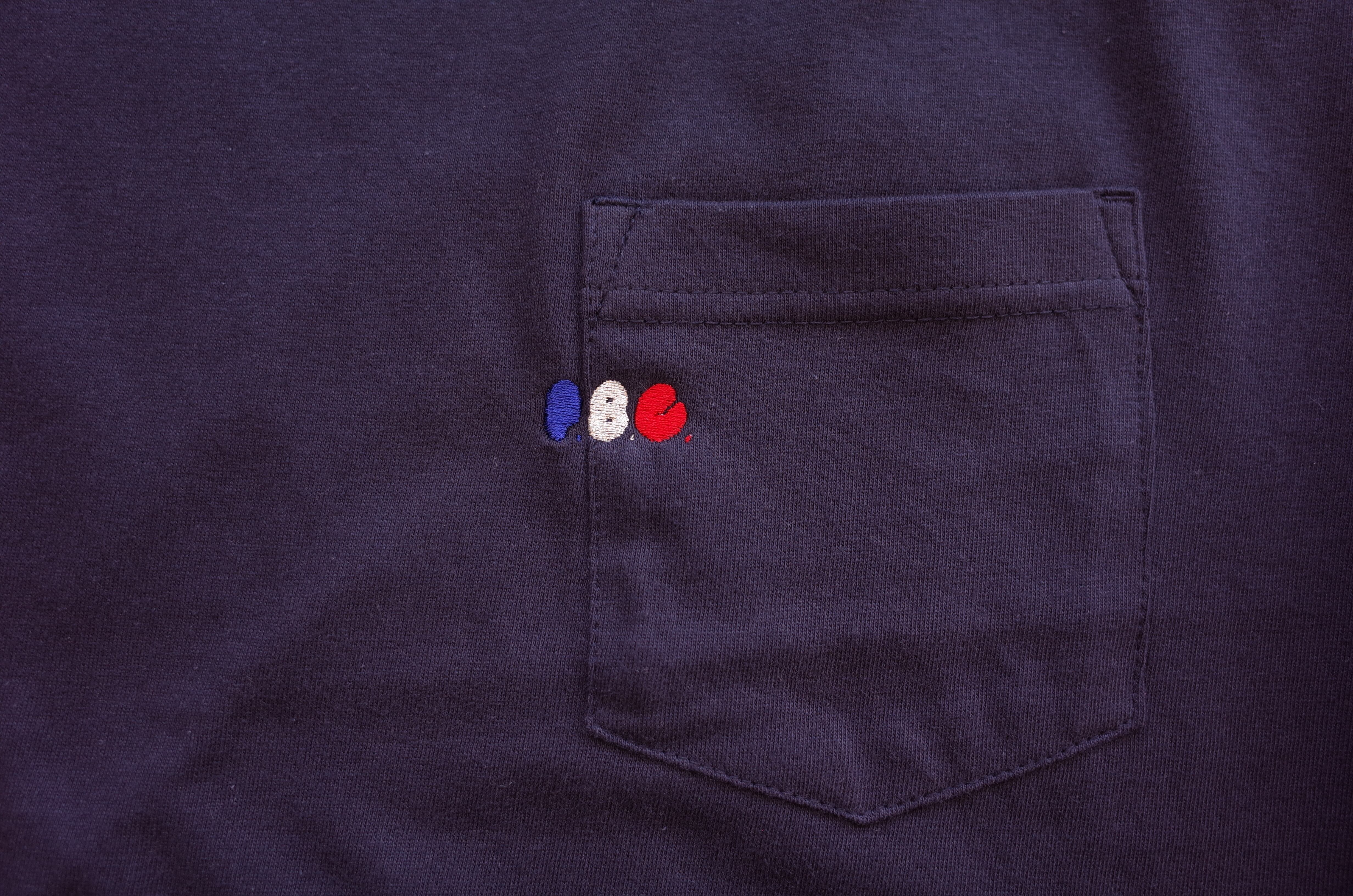 今回はシンプルなポケットTシャツに、P.B.C.ロゴを刺繍しました。