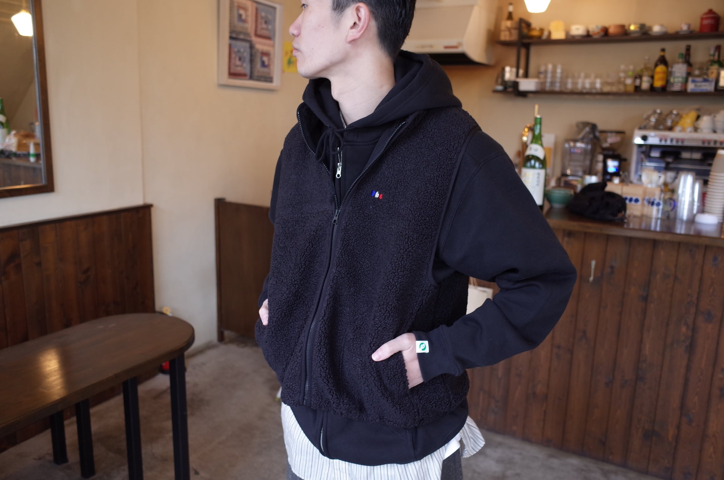 コンパクトなサイズ感でパーカーとして着用したり、コートの下に着用する事も、