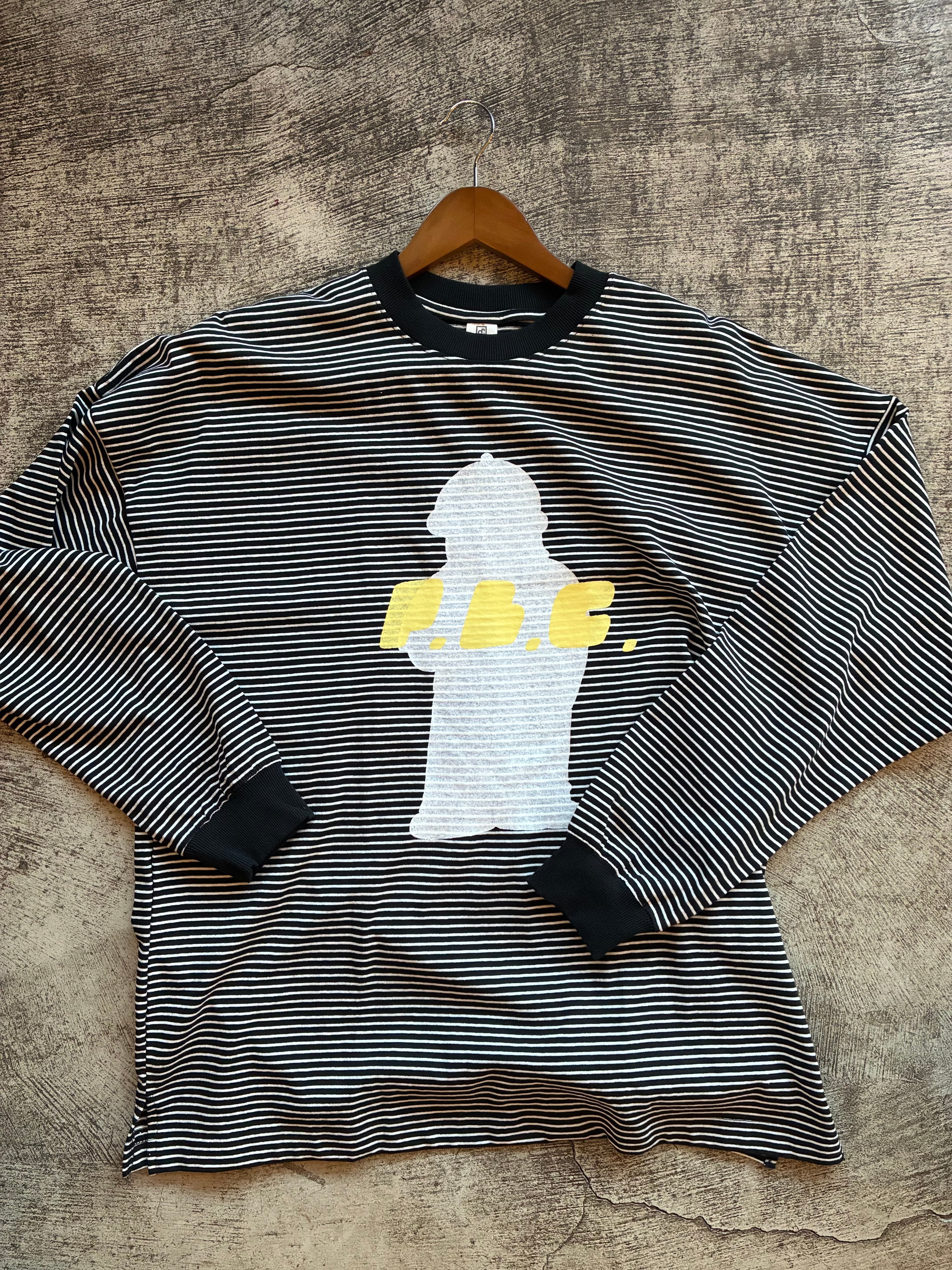 ボーダTシャツに、お店のキャラクター『ポッパーくん』のシルエットを印刷。