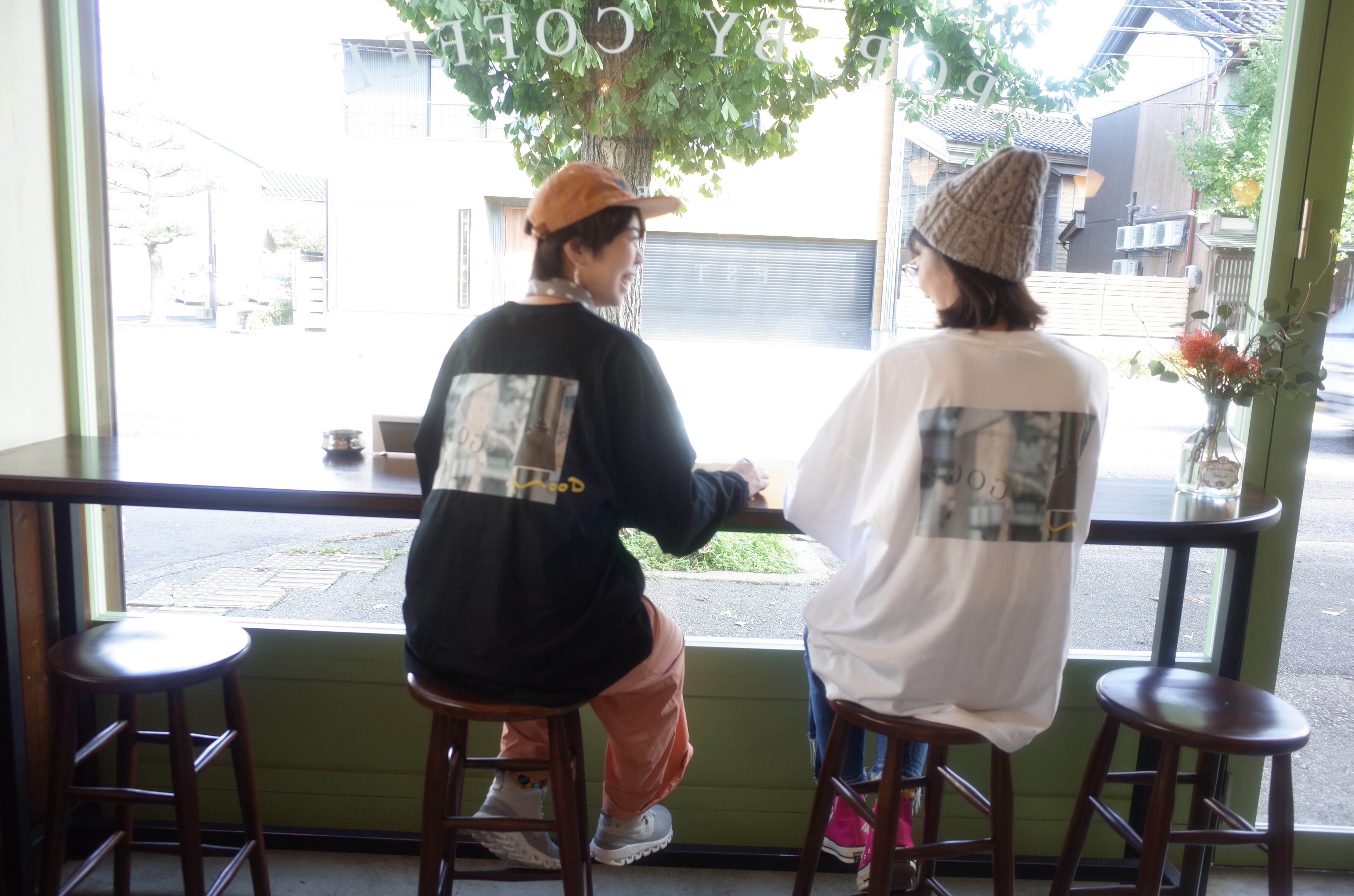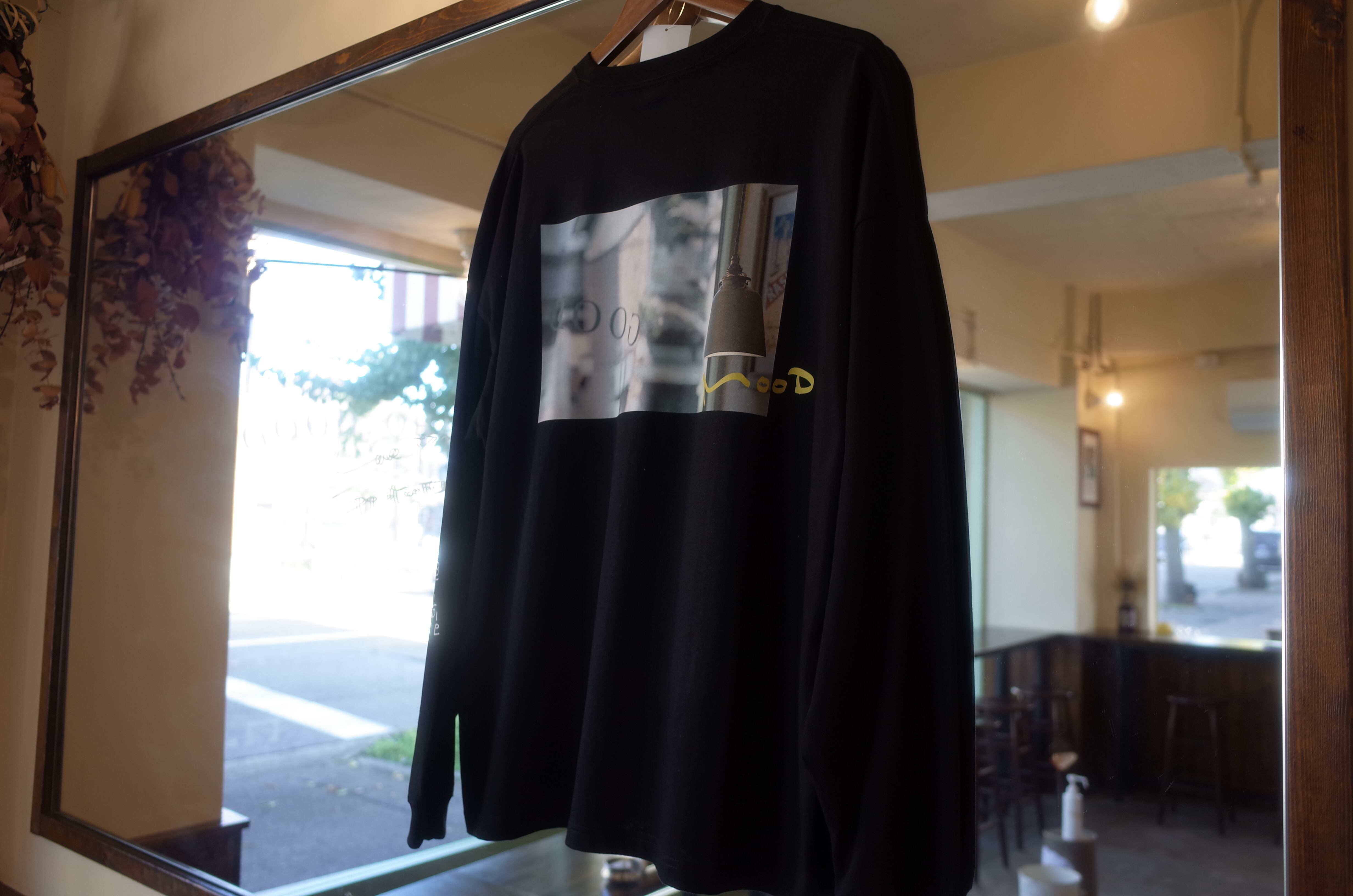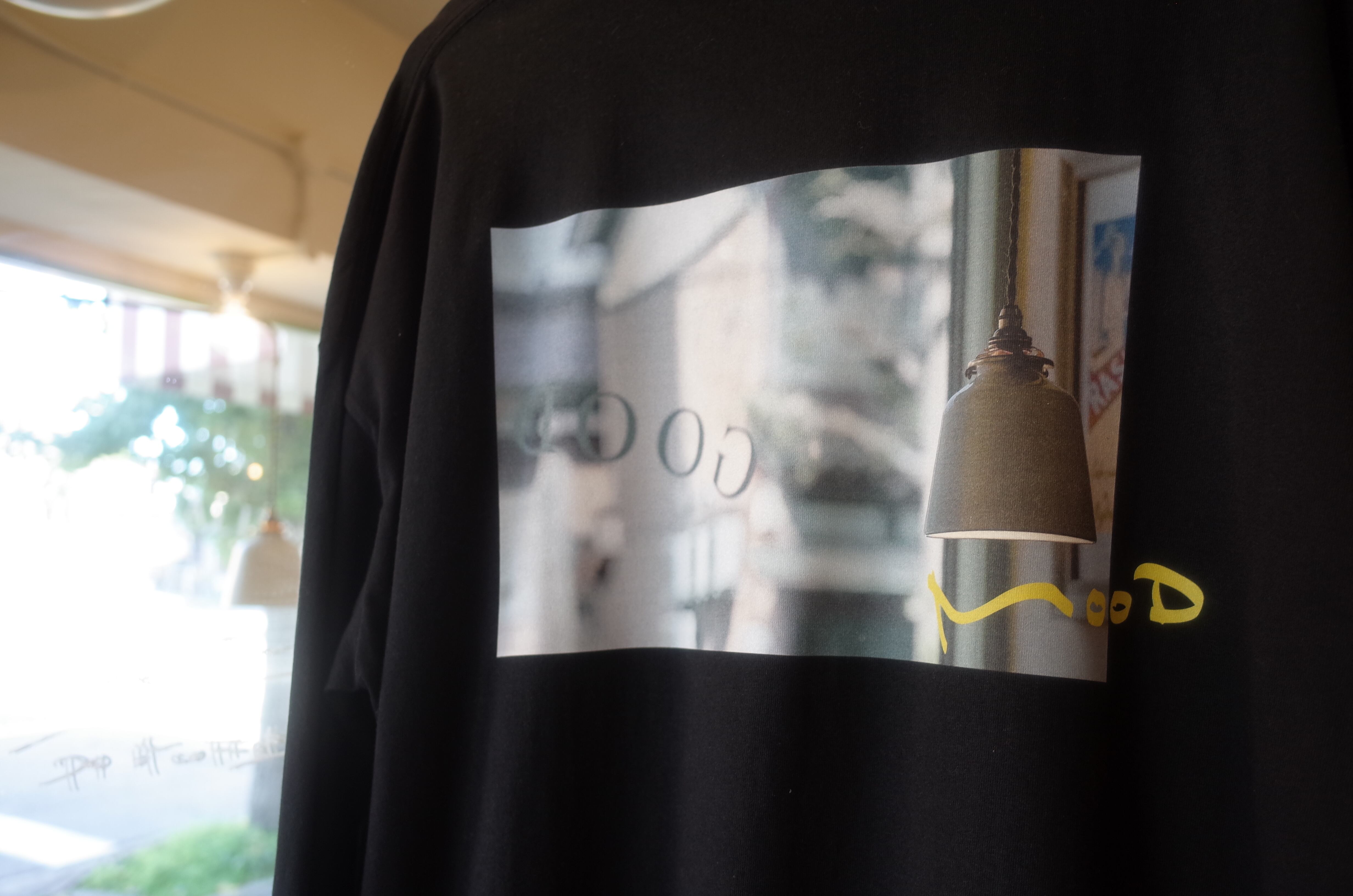 店の外観をきりとった写真をバックプリントとし、その右下にmoodと加えたバックデザイン。