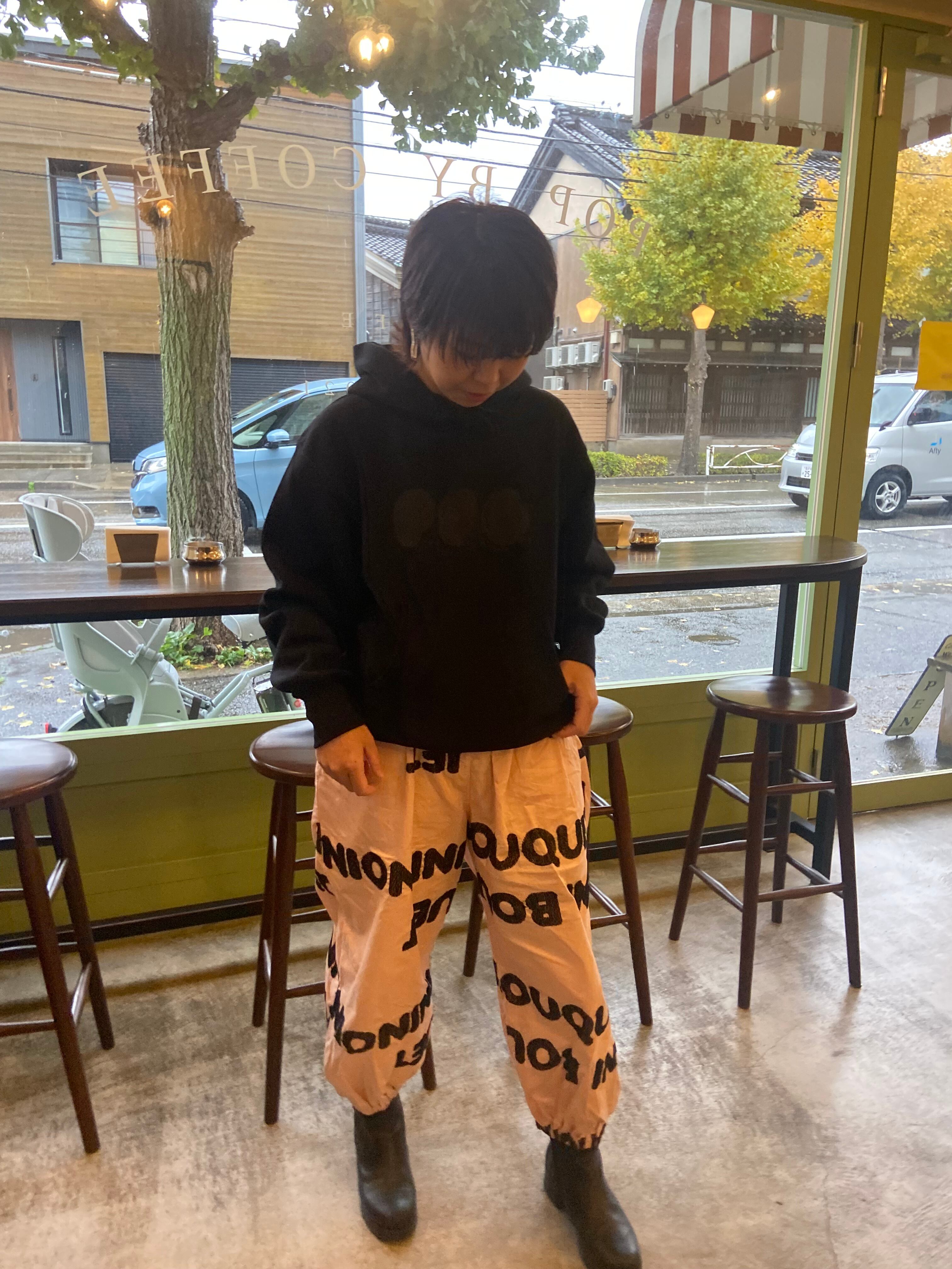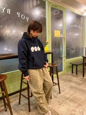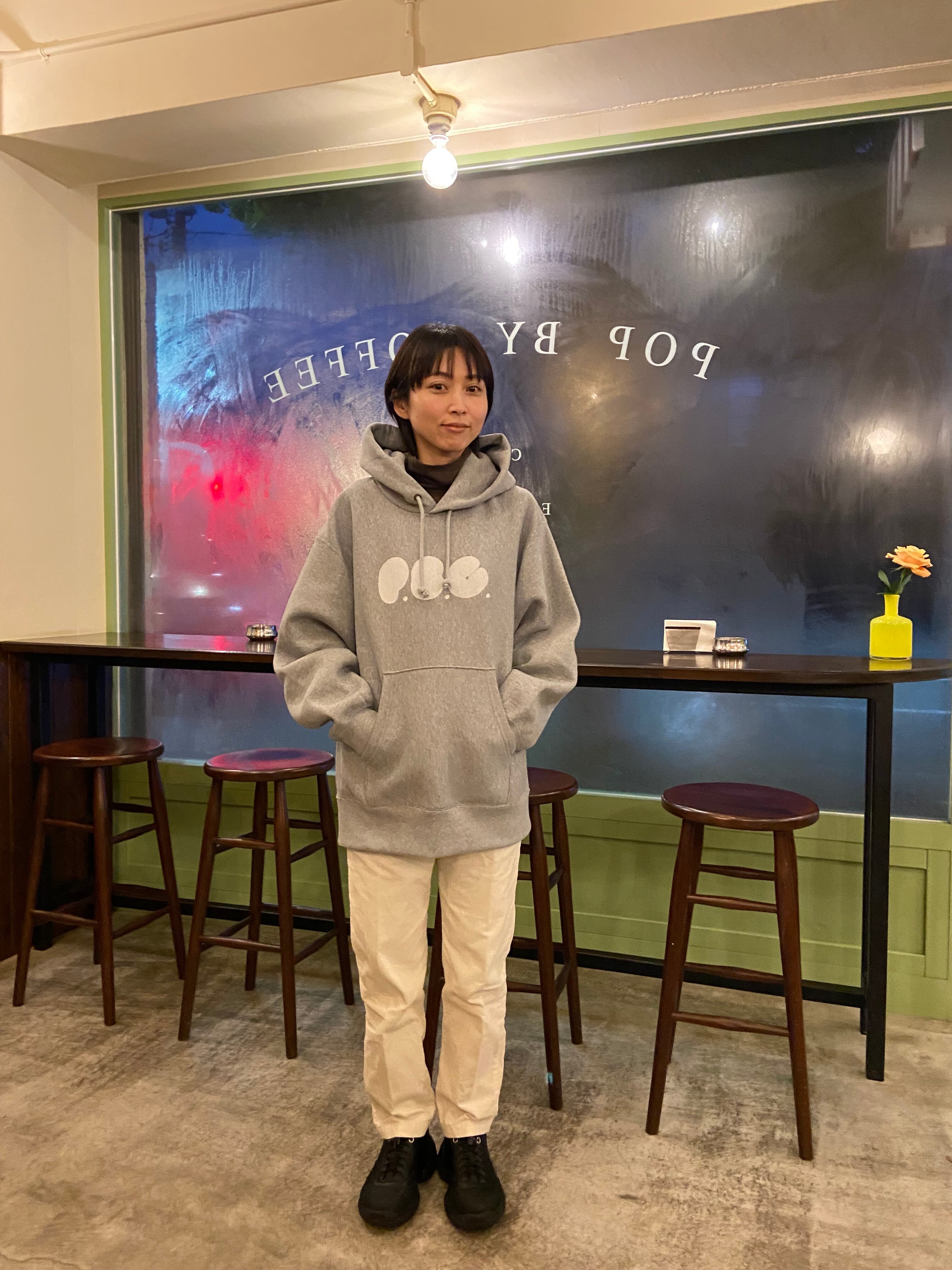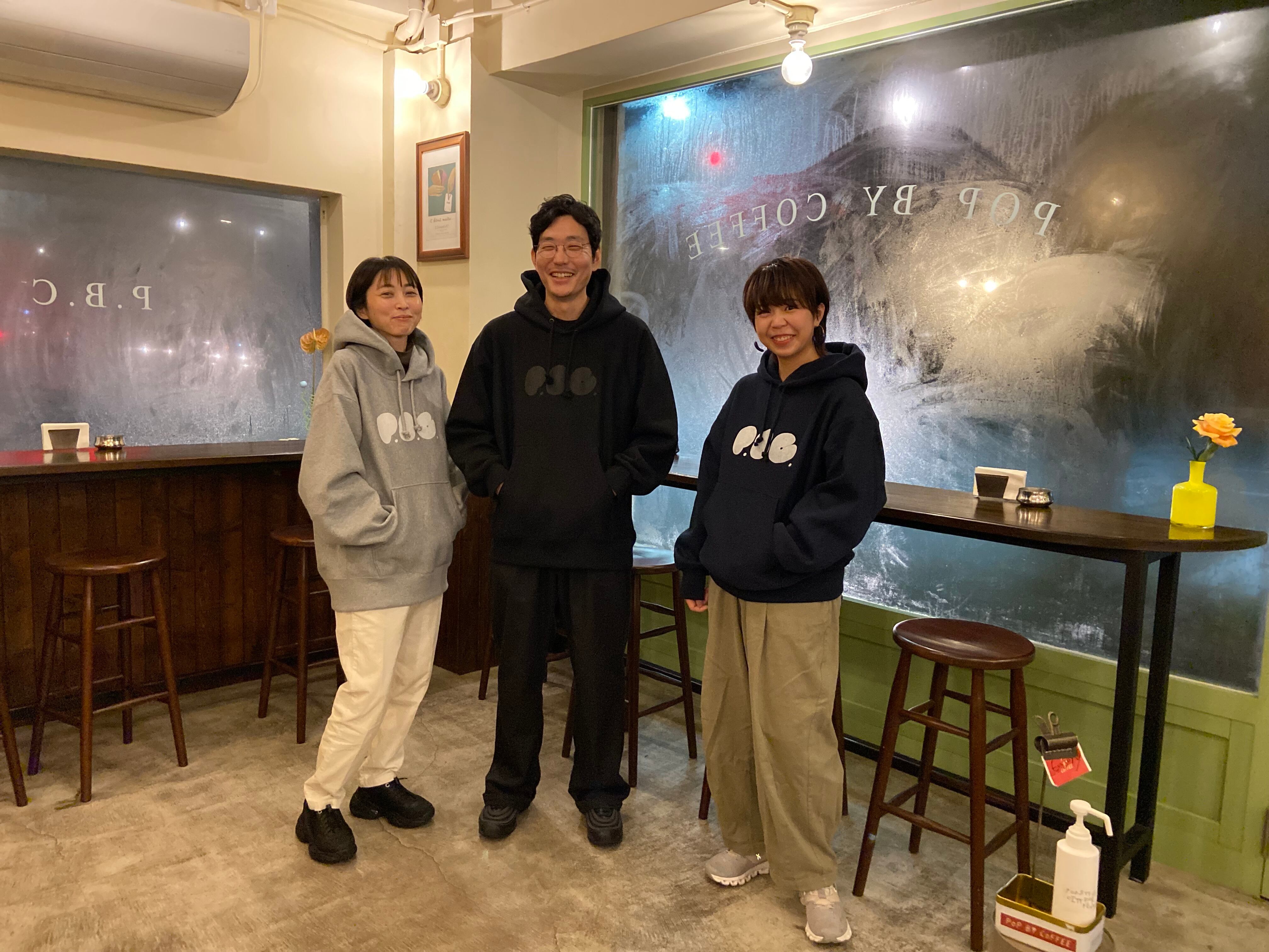 絵本作家の『のふらもら』さんにデザインしていただいたP.B.Cロゴをフロント部分に。バックは外観の象徴でもあるオーニングのデザインをパーカ部分から見え隠れする箇所にプリントしたアイテム。