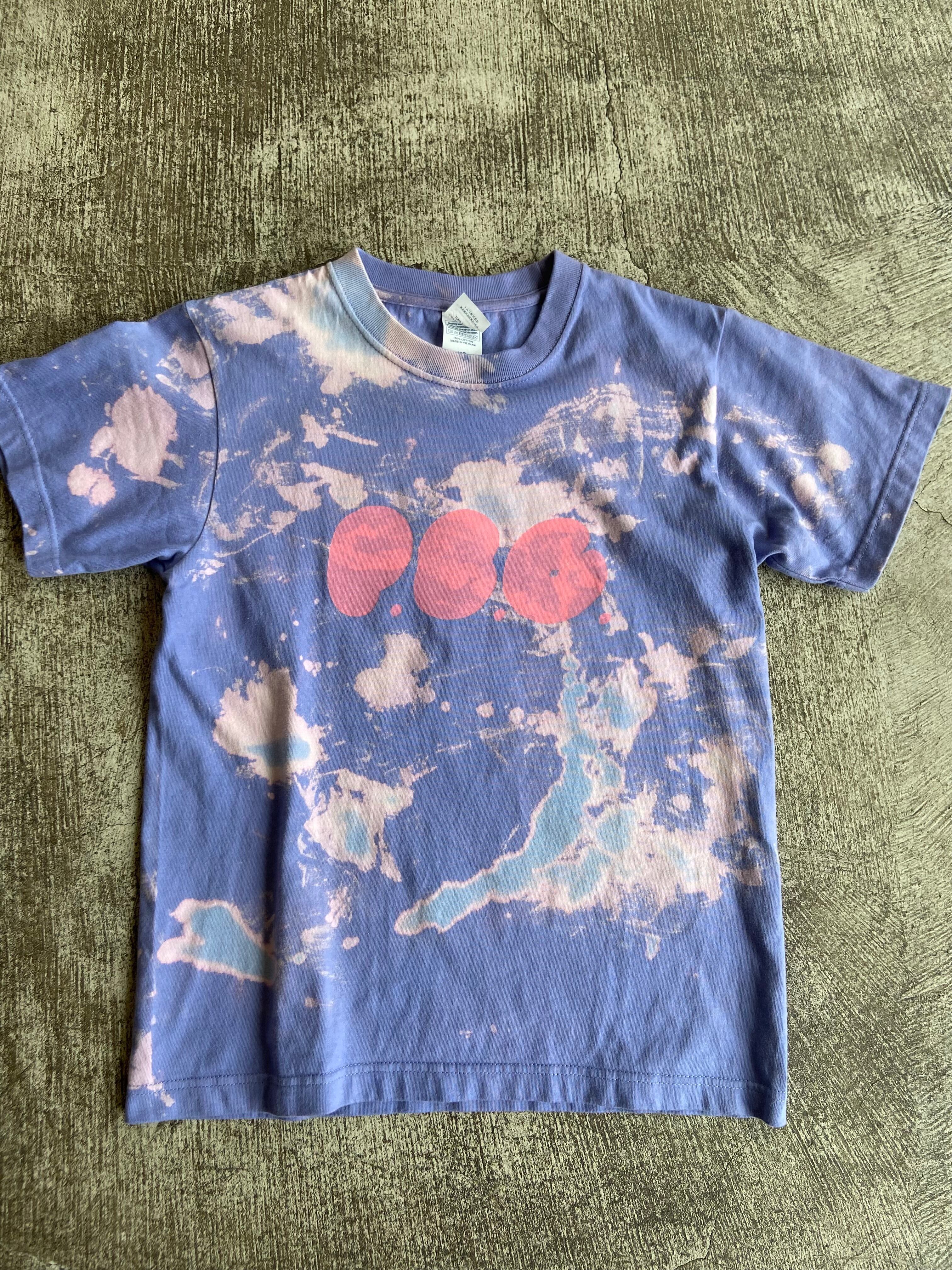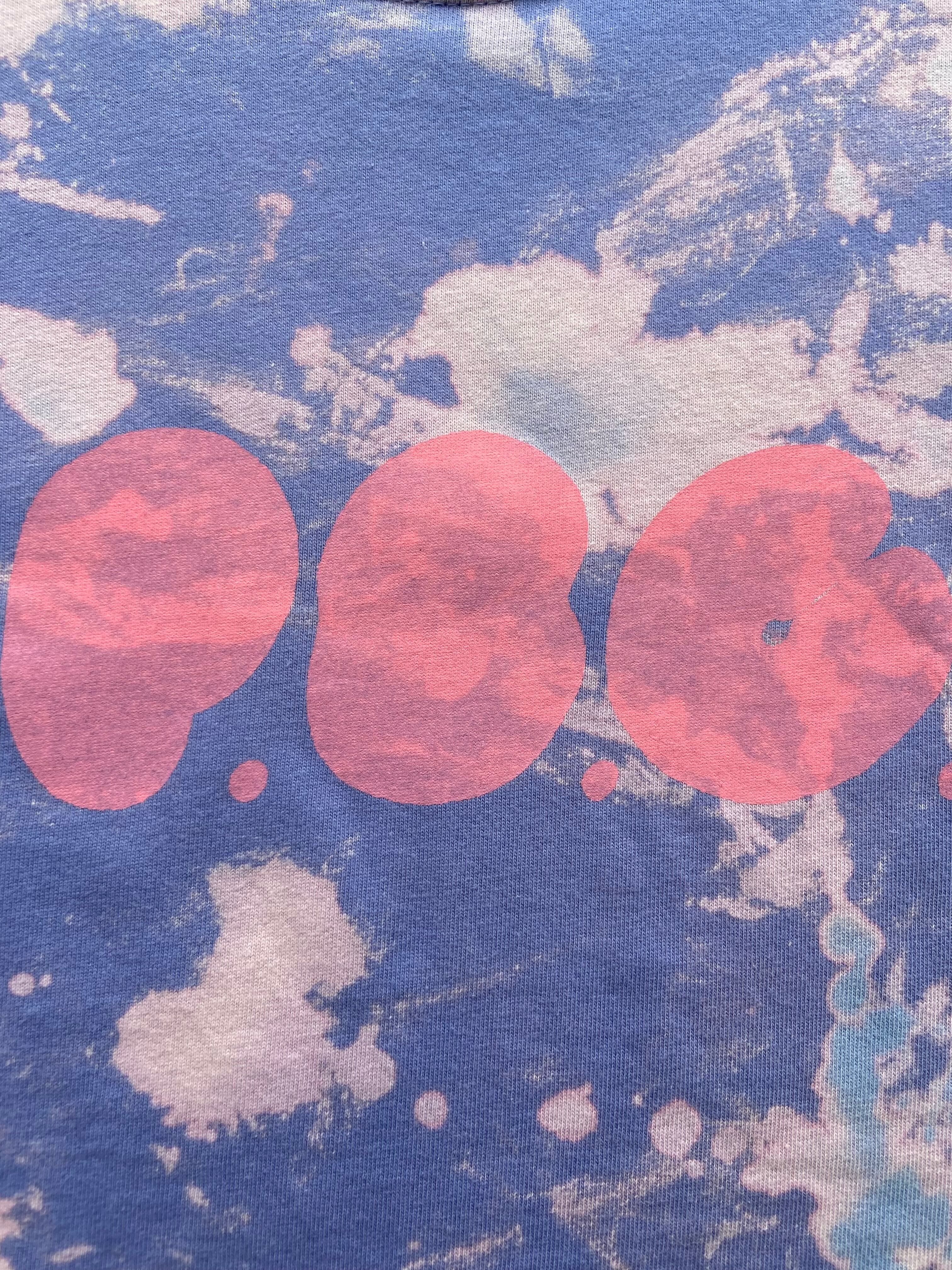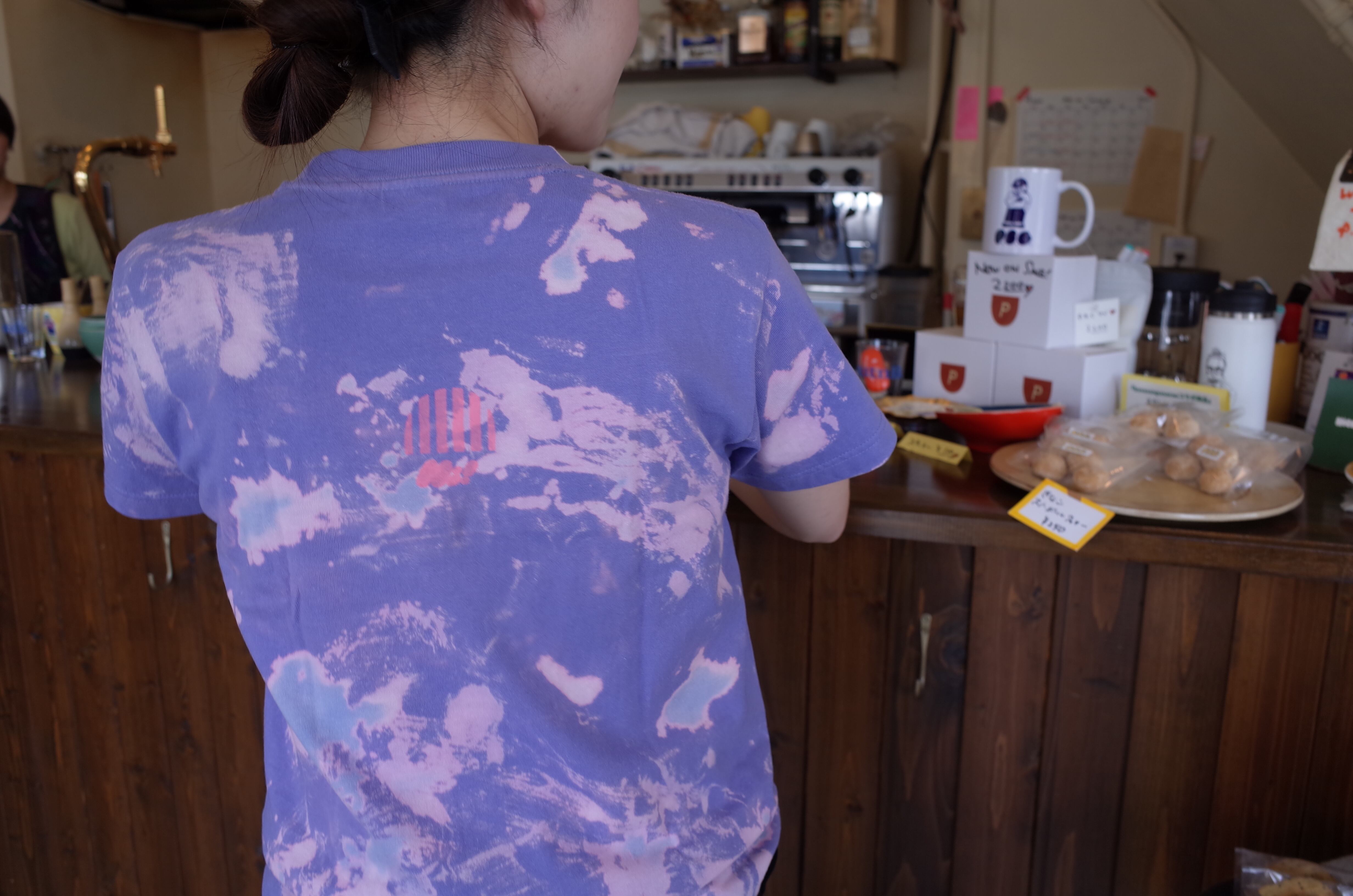 ※手作業で脱色しているため柄に違いがあります。またシルクスクリーンも手作業のため、若干文字の濃さに違いがあります。それも込みで古着の様な風合をお楽しみいただけたら幸いです。