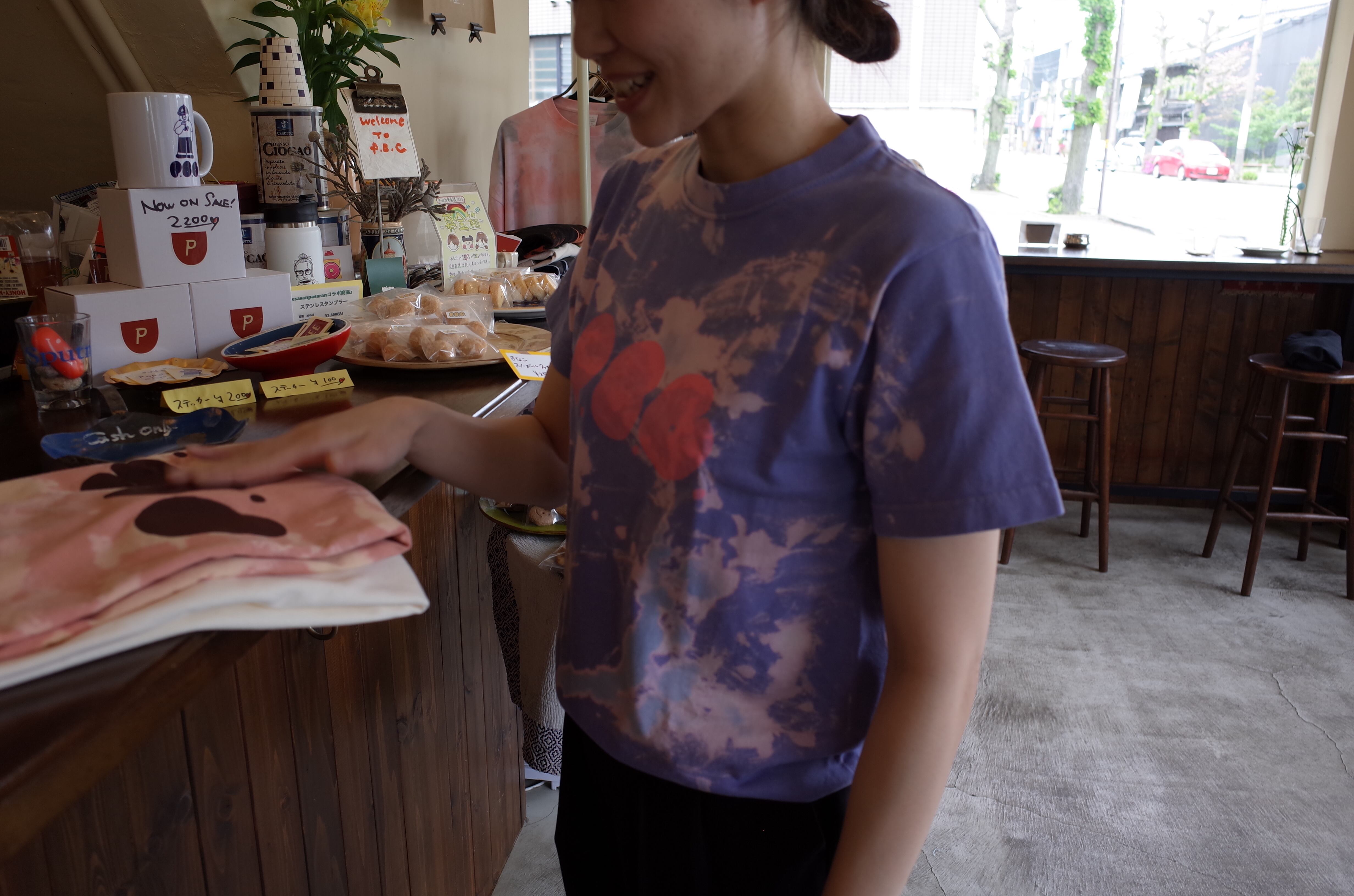 絵本作家の『のふらもら」さんにデザインしていただいたP.B.Cロゴをフロント部分に。バックは外観の象徴でもあるオーニングのデザインをプリントしたアイテム。