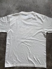 生地は超肉厚7.4オンス。重厚感のあるしっかりとした重さのヘビーウェイトTシャツを使用しています。ロゴはシクルクスリーンで刷りました。