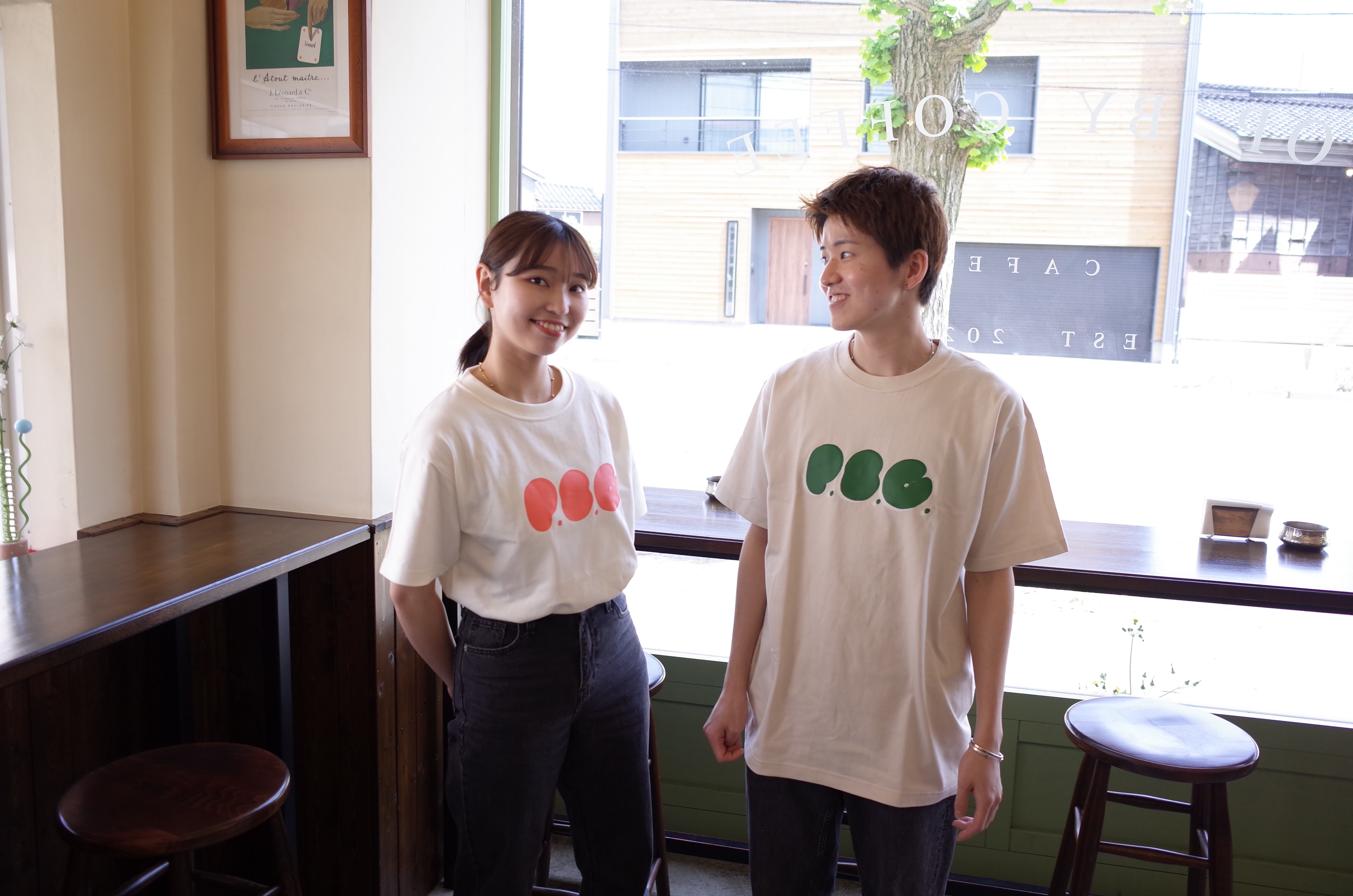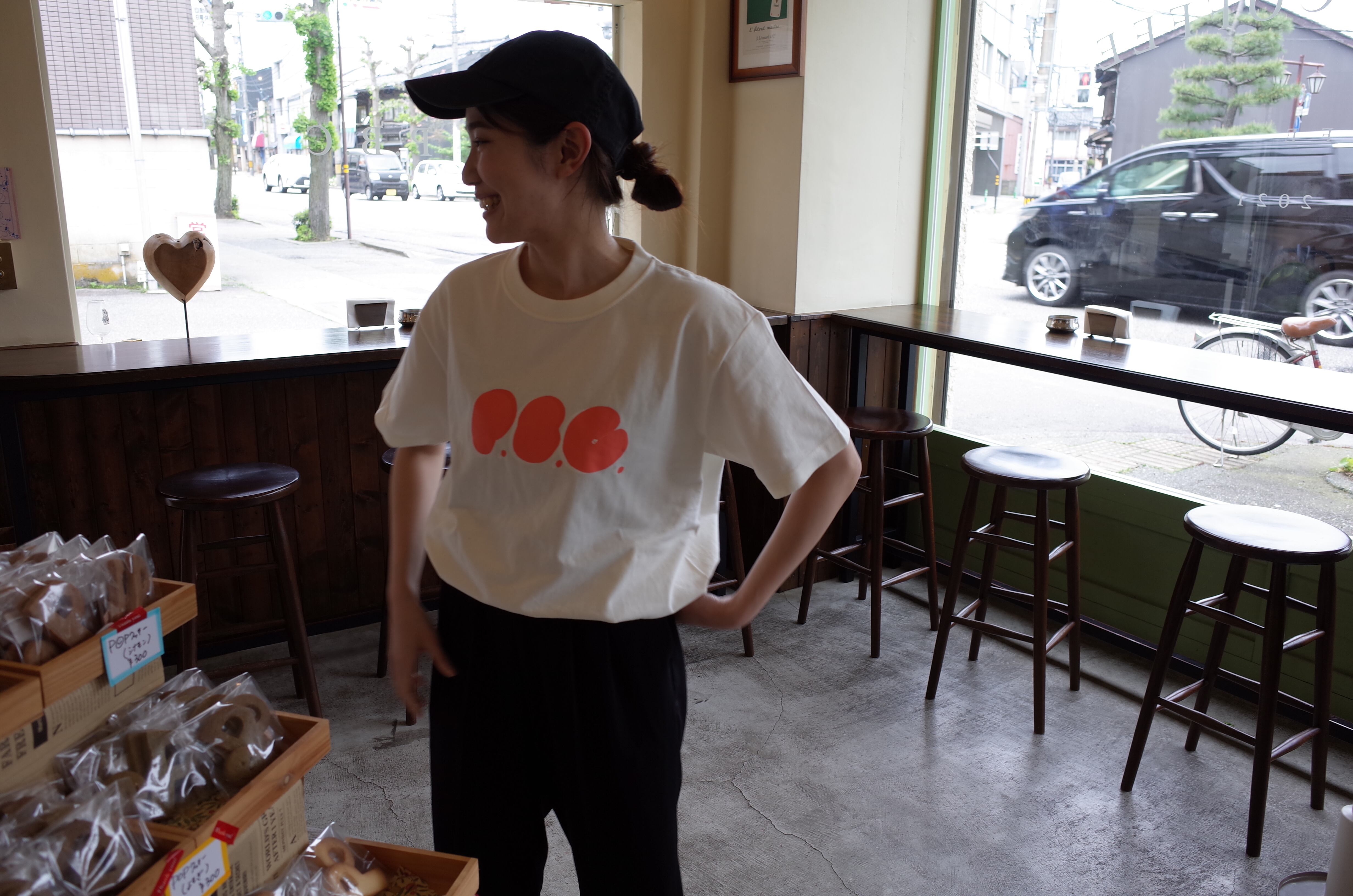 絵本作家の『のふらもら」さんにデザインしていただいたP.B.Cロゴをフロント部分に。バックは外観の象徴でもあるオーニングのデザインをプリントしたアイテム。