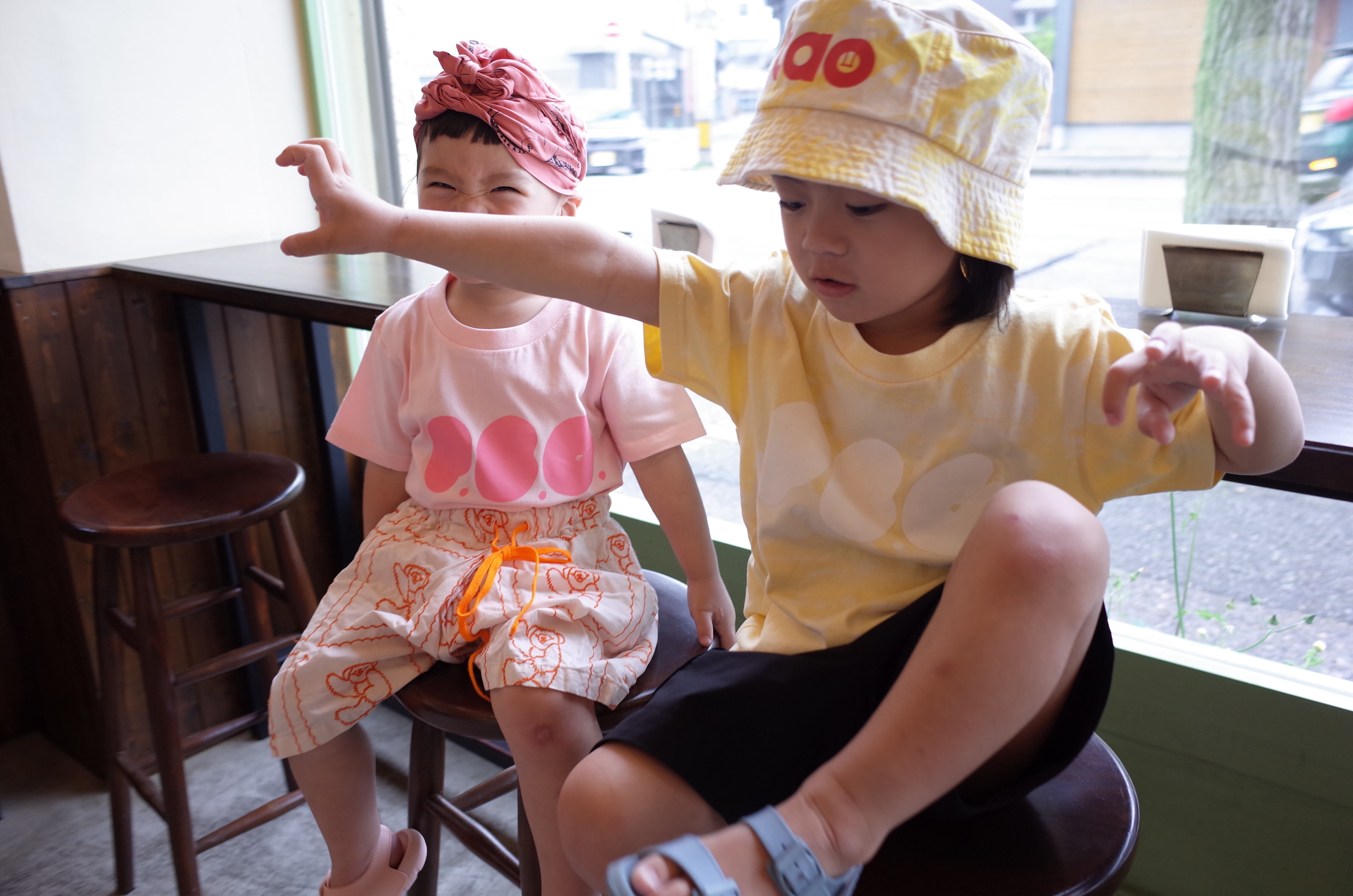ピンクはブリーチせず可愛さ満点に、文字もピンクを。ライトイエローTシャツは一枚一枚手作業で脱色し、ロゴをシルクスクリーンでプリントしています。
