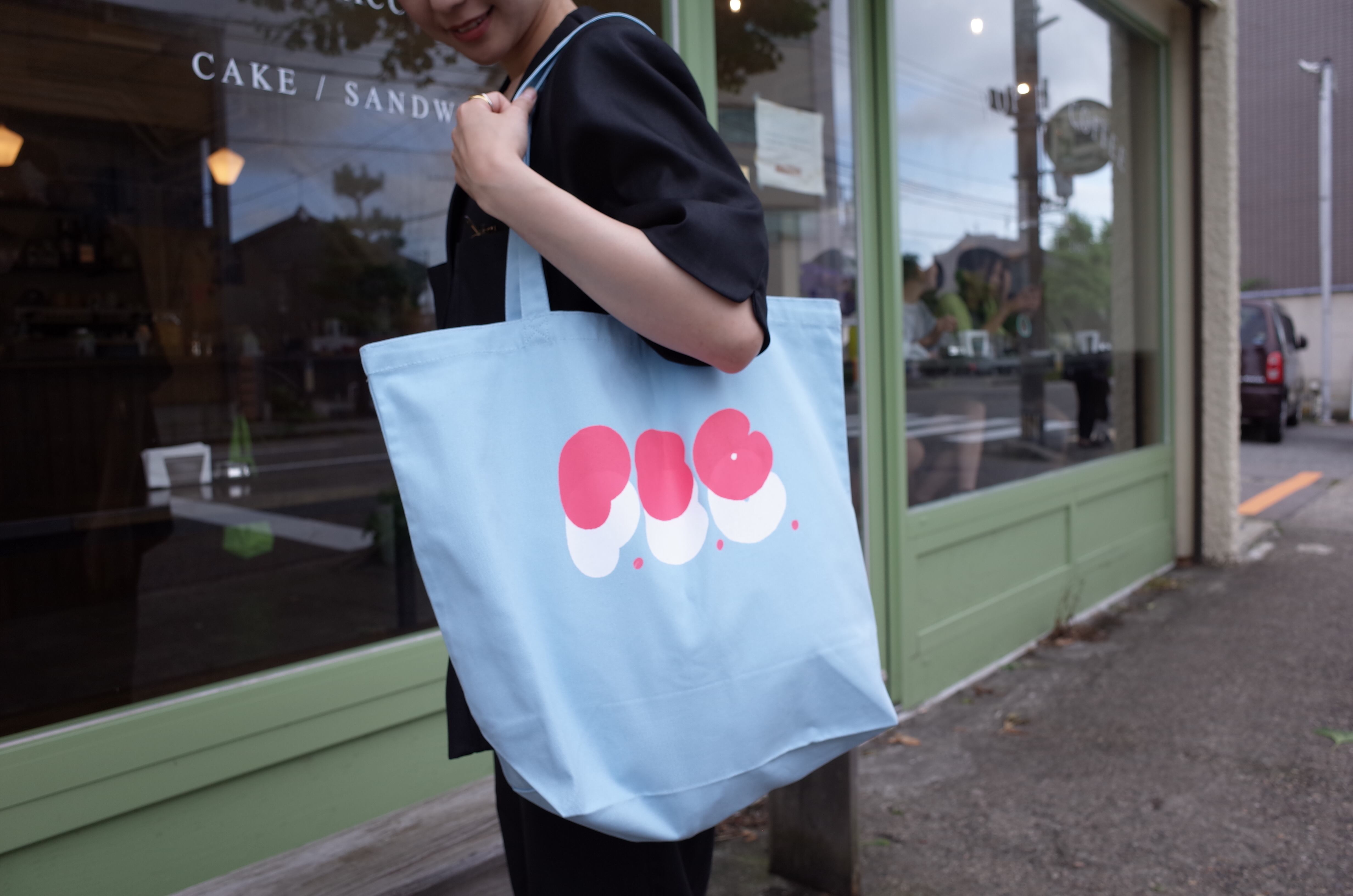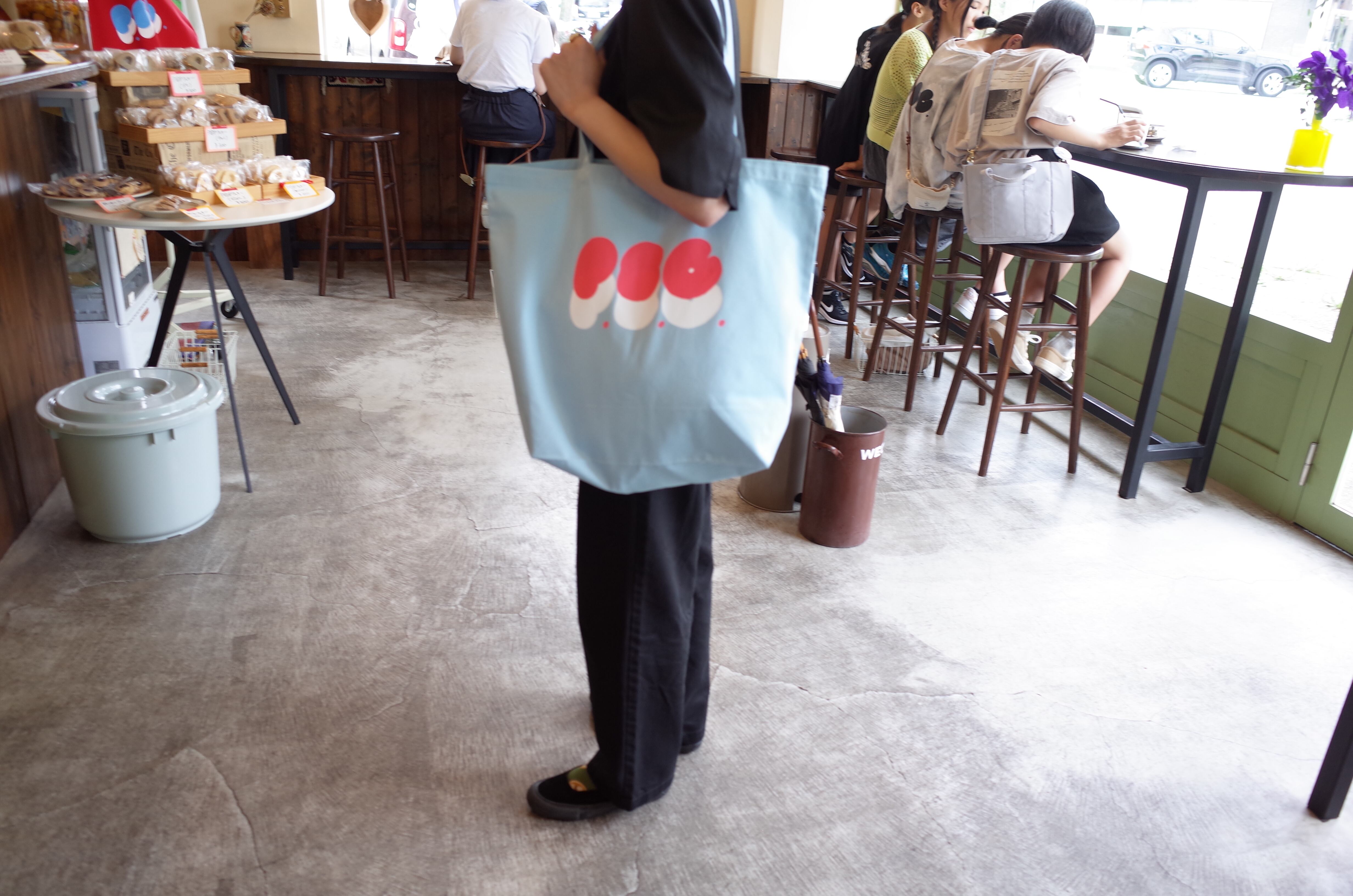 肉厚なキャンバストートに、絵本作家の「のふらもら」さんにデザインしていただいたロゴをプリントしました。