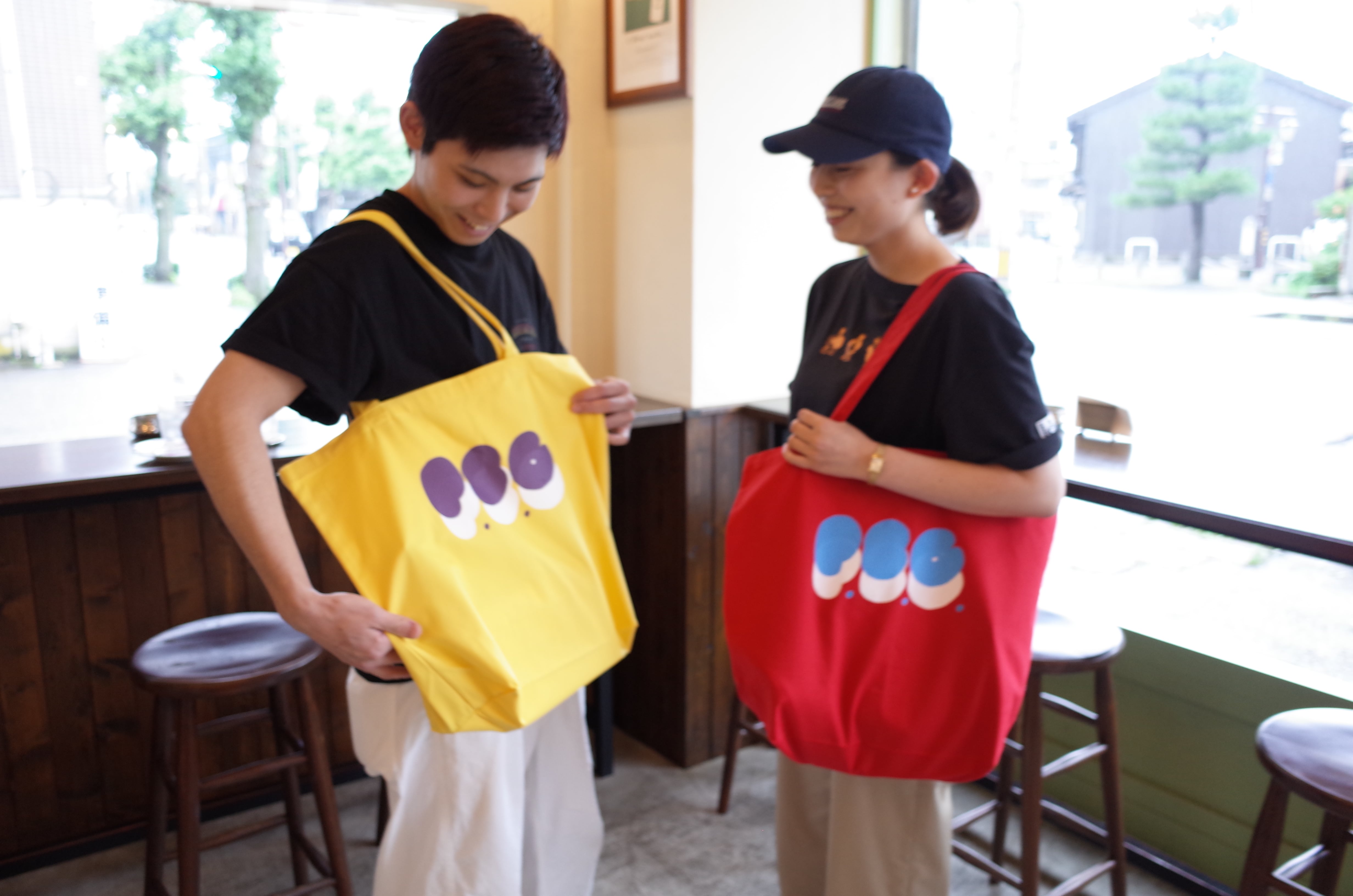 肉厚なキャンバストートに、絵本作家の「のふらもら」さんにデザインしていただいたロゴをプリントしました。