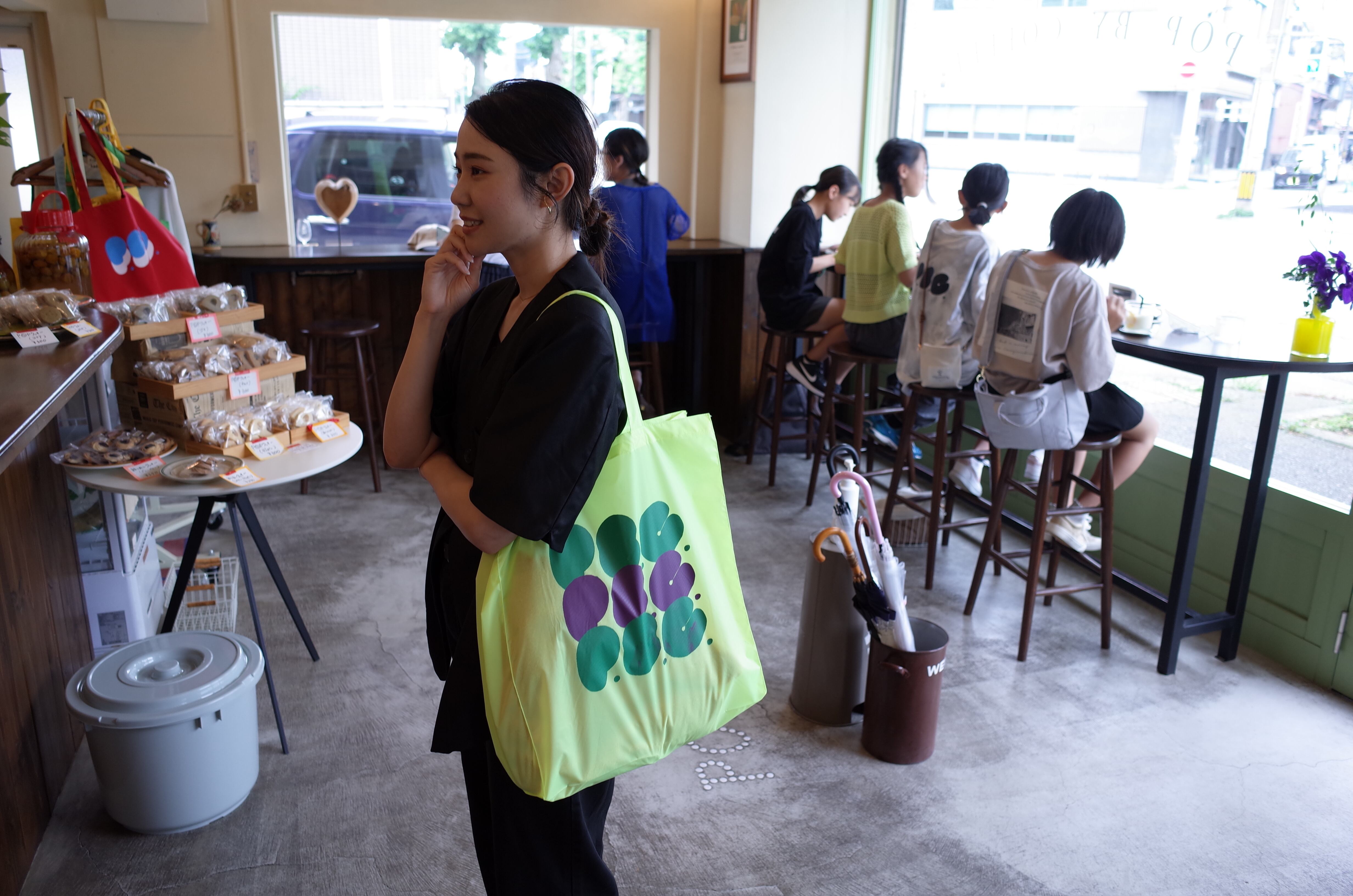 絵本作家の「のふらもら」さんにデザインしていただいたロゴをプリントしました。