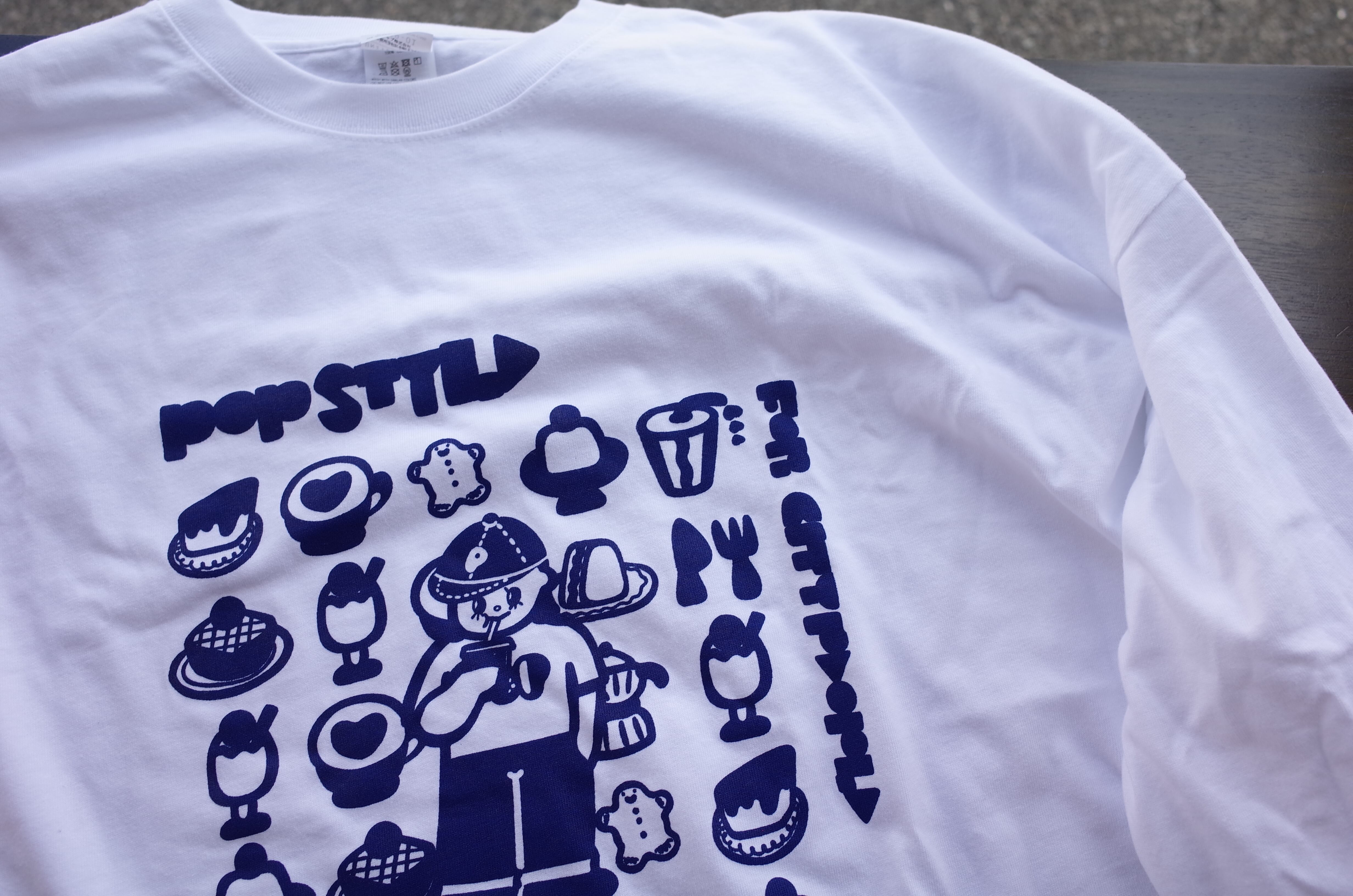 お店のキャラクターでもあるポッパー君をメインにケーキやドリンク、お店のアイテムを盛り込みPOPBYCOFFEEらしさを表現したデザイン。