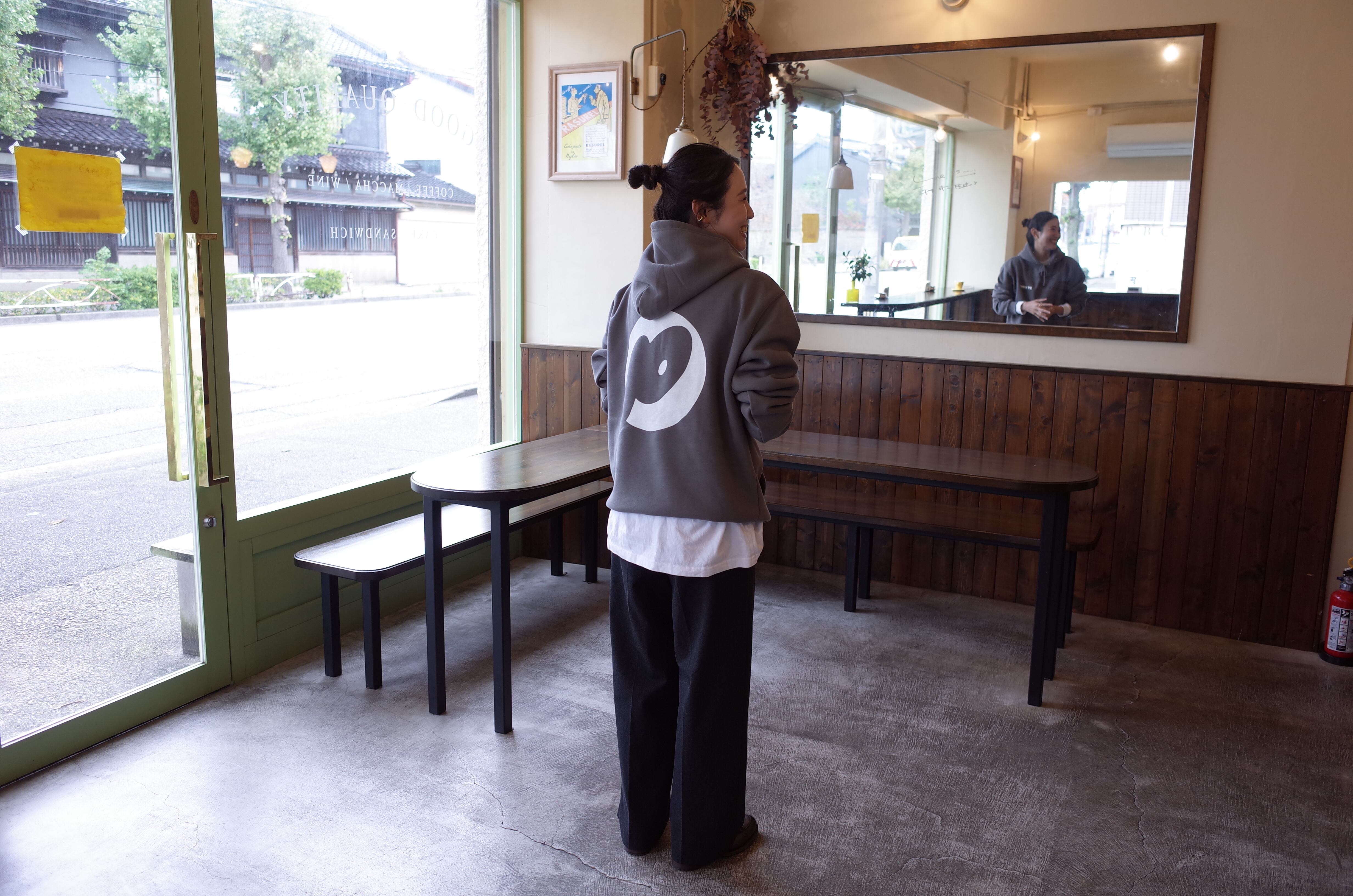背中には新しい店舗ロゴをビックプリントし、胸元には「BY COFFEE」を配置。