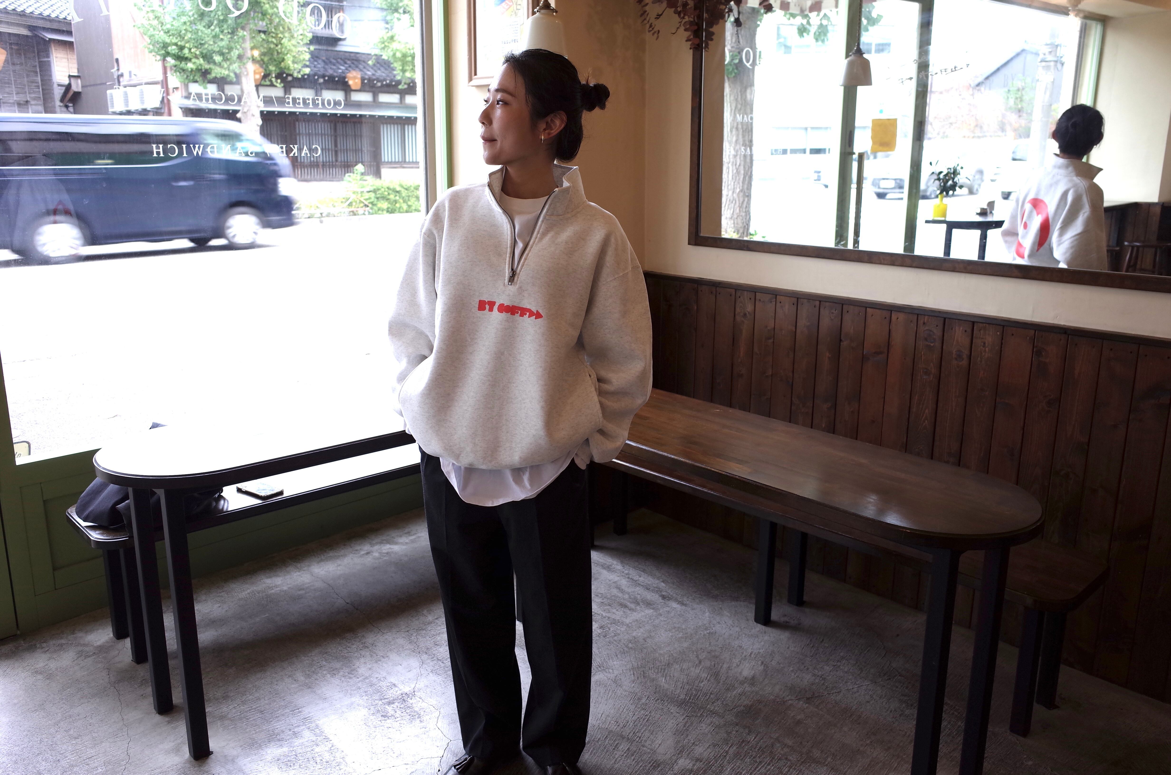 背中には新しい店舗ロゴをビックプリントし、フロントには「BY COFFEE」を配置。