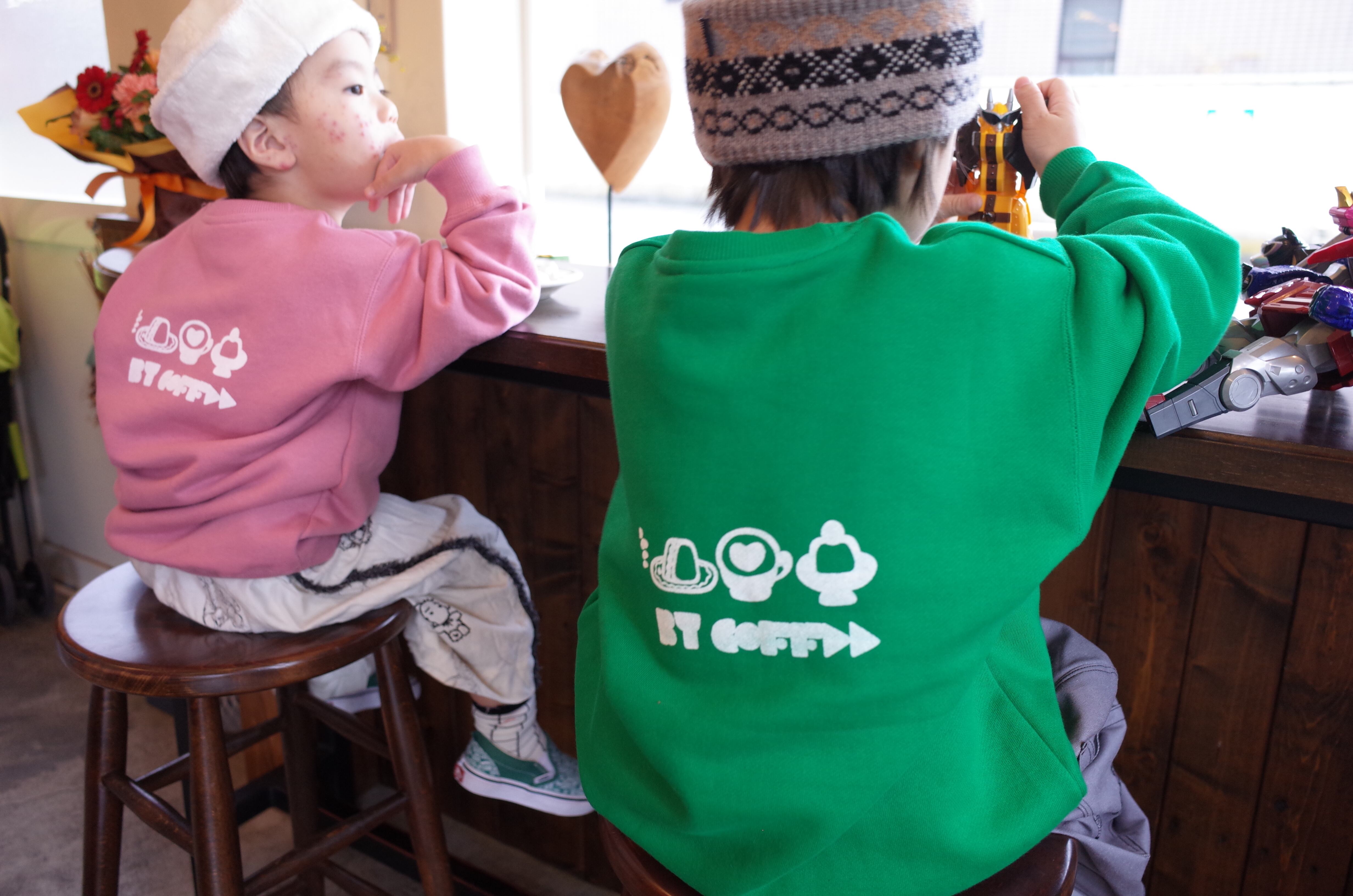 胸元には新しいお店のロゴ、背中には♡のカプチーノやプリンのイラストを並べ、シンプルながら可愛いが詰まったデザインに!